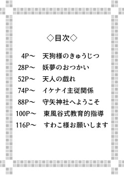 CHARACTERS: suwako moriya youmu konpaku momiji inubashiri sanae kochiya sakuya izayoi tenshi hinanai aya shameimaru kanako yasaka